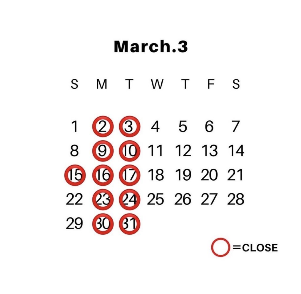 3月の日程です🌸