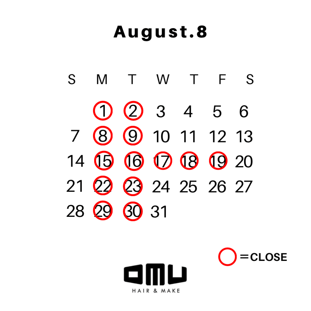 8月15日(月)〜19日(金)まで5日間の夏季休業を頂きます。