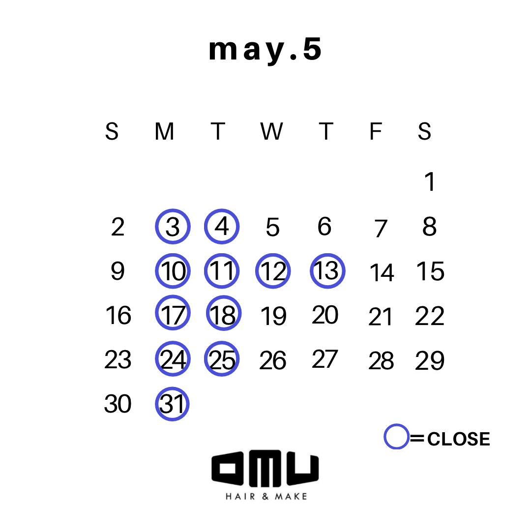 5月10日〜13日の4日間、OMUではGWとしてお休みさせて頂きます。